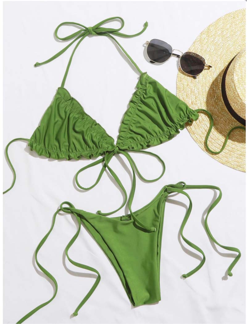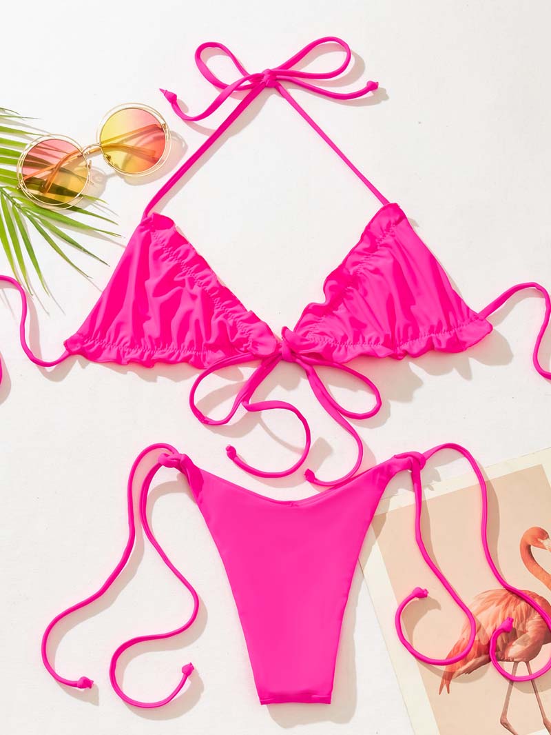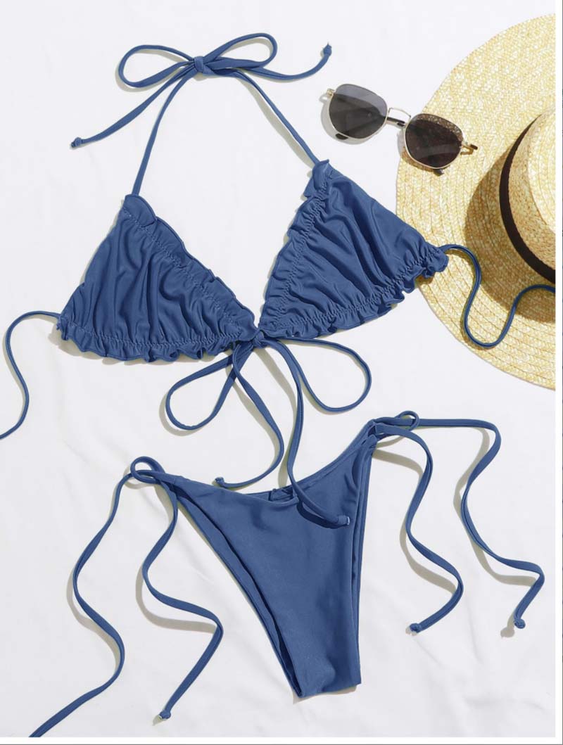 A comfortable, solid-colored, lace-up swimsuit bikini