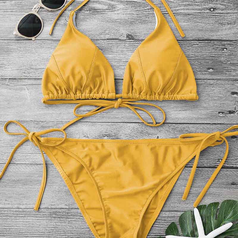 Women's swimwear: Two-piece solid-color special fabric bikin