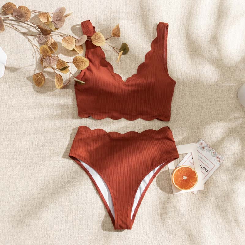 Ladies' two-piece solid-color swimsuit petal-shaped bikini